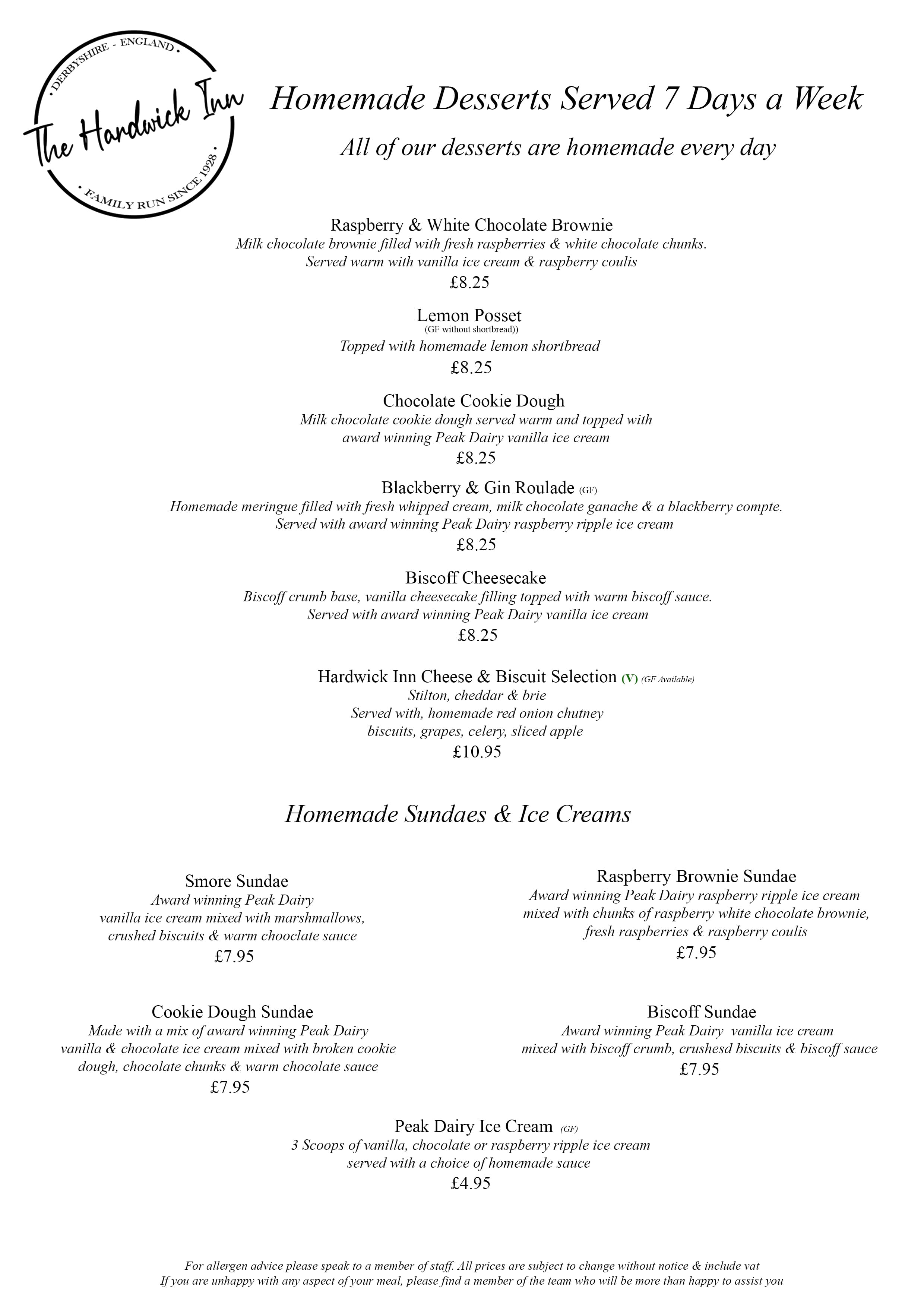 Local produce and freshly made meals are important to us so therefore our chef's hand prepare each and every meal daily.